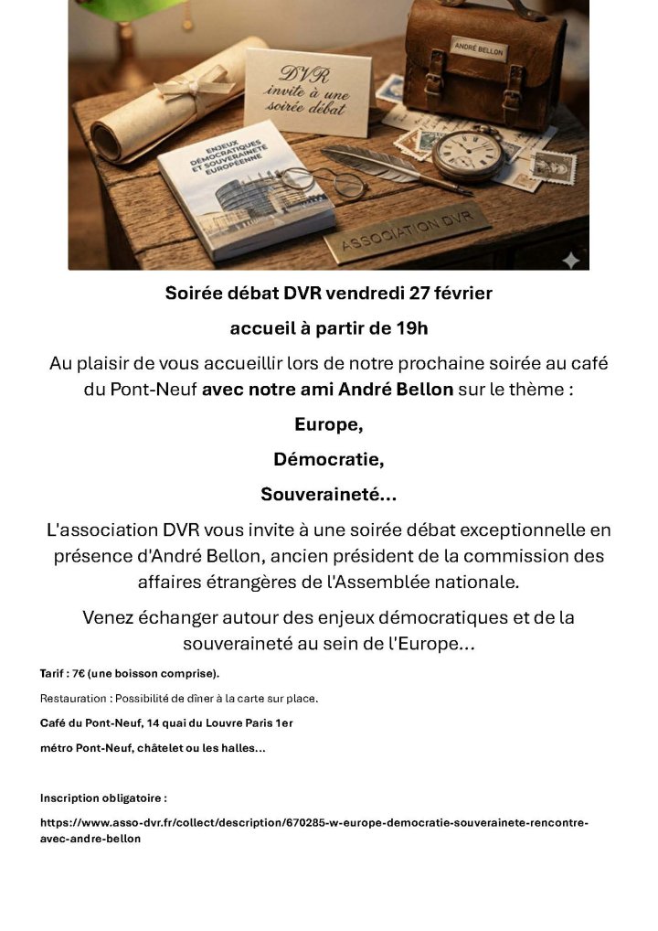 Vous êtes invités à la soirée-débat avec André Bellon le 27 février à partir de 19h.
